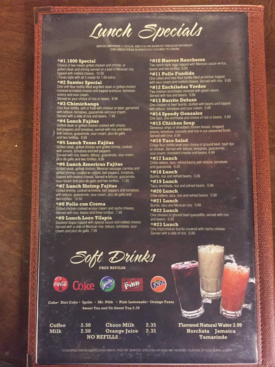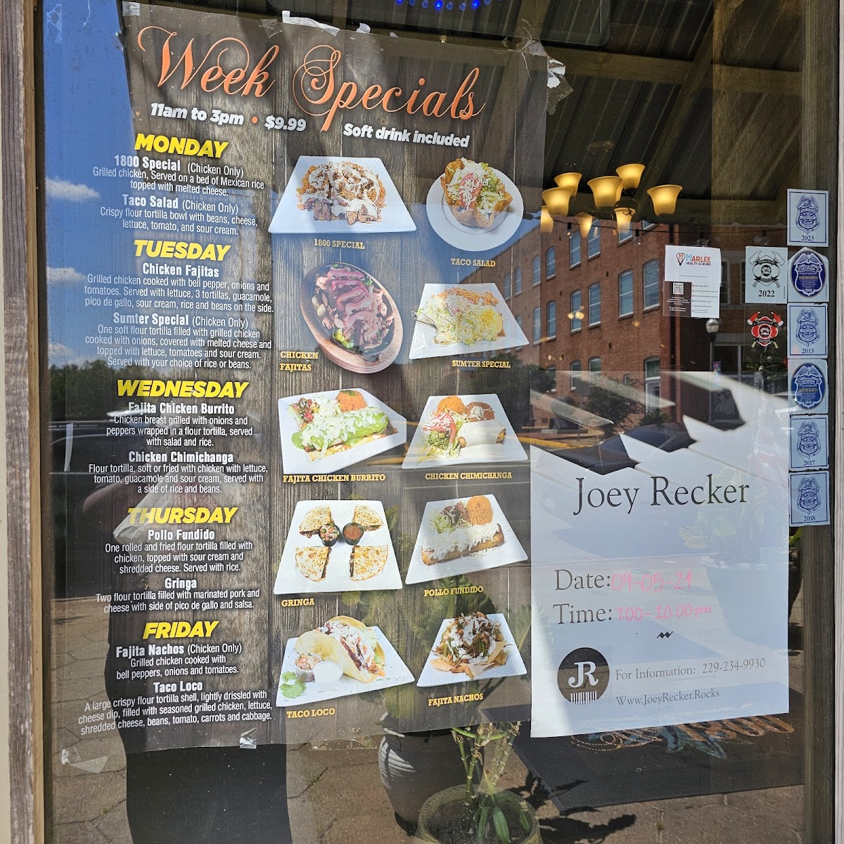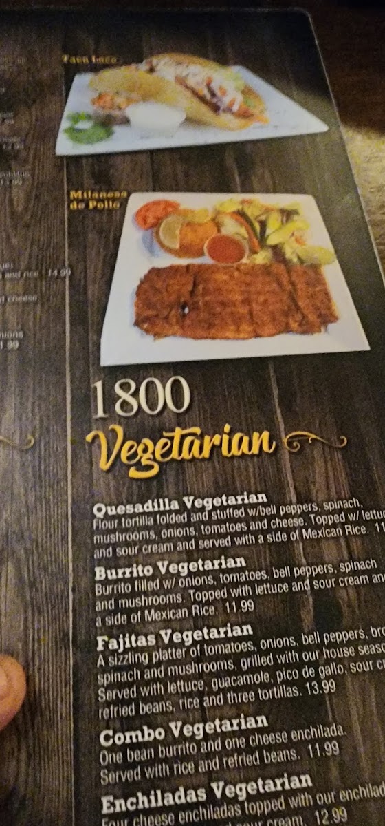 Nestled in the heart of Americus at 329 W Lamar St, The 1800 Mexican Restaurant invites you to embark on a culinary journey through the vibrant and delicious flavors of Mexico. Our menu is a feast for the senses, featuring delightful specialties that will tantalize your taste buds and leave you craving more. Indulge in our signature 1800 Special, or dive into the crispy goodness of our Shrimp Chimichanga. For seafood lovers, the Mojarra and Seafood Burrito are sure to impress, while the Chicken Quesadilla and Sumter Fajitas cater to those desiring a hearty meal. Don't forget to try our refreshing Frozen Peach Margarita and the delightful Fried Ice Cream to round out your dining experience. Whether you're looking for rich flavors or a burst of freshness, The 1800 Mexican Restaurant Menu has something for everyone. Come hungry, and let us take your palate on a flavorful adventure!